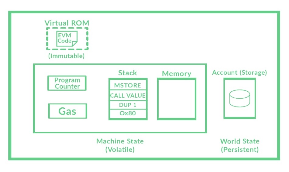- EVM - Ethereum Virtual Machine (EVM) is Sandboxed Virtual Machine part of Ethereum Full Node where the Smart Contract executes.